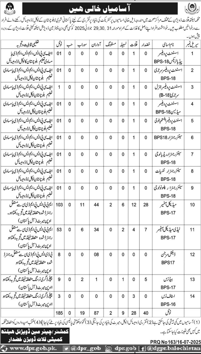 The Government of Balochistan is seeking to fill a large number of vacancies across various specializations. Below is a summary of the key positions available. Please refer to the original advertisement for the detailed breakdown of posts per division and specific quotas.
