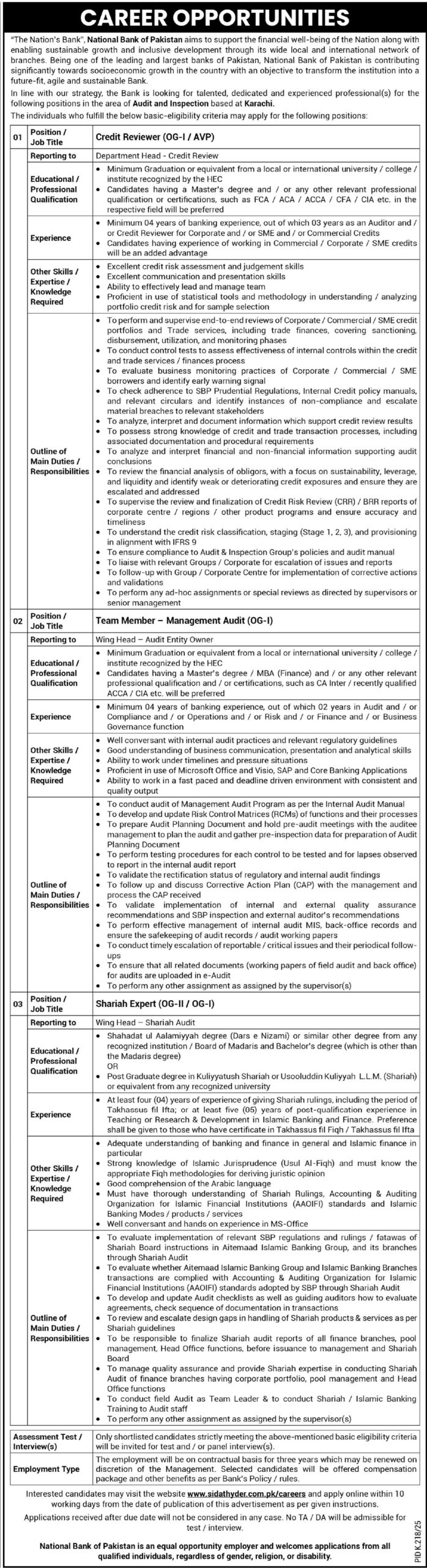 • Equal Opportunity: The National Bank of Pakistan is an equal opportunity employer and encourages applications from all qualified individuals, including women and persons with disabilities.