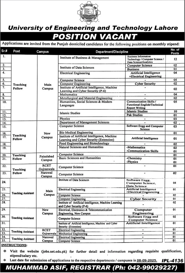 - Visit the Official Website: Go to jobs.uet.edu.pk to review detailed eligibility criteria, required qualifications, and stipend/salary information.