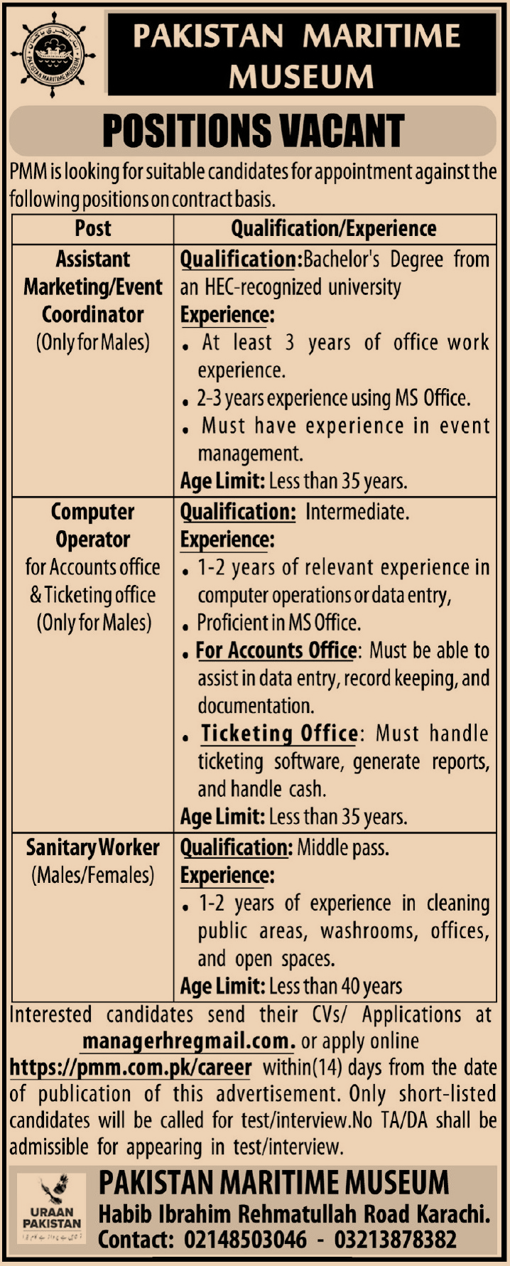 Explore our vacancies on Employmentpk and other platforms and find your place within the remarkable story of the Pakistan Maritime Museum.